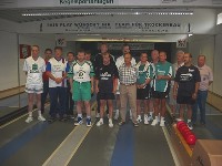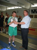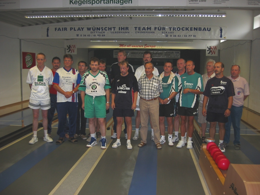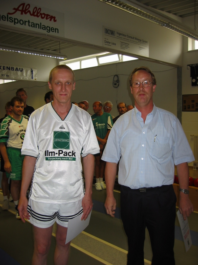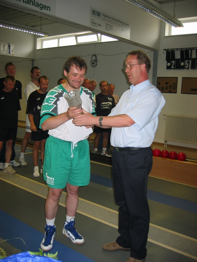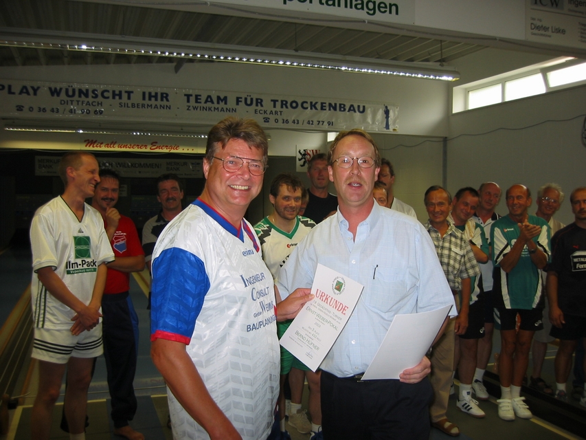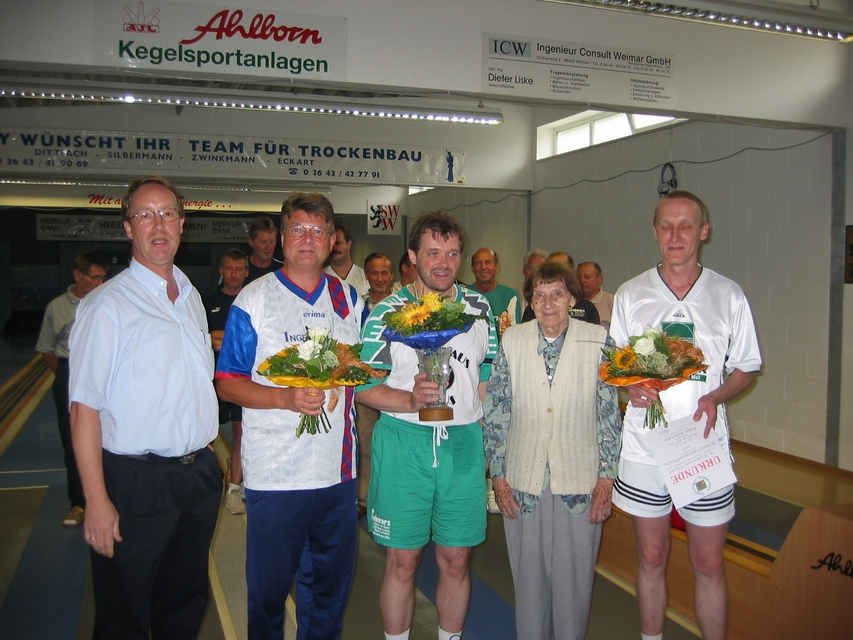 v.l.n.r. Gerhard Diez (Vors. KVKW) Bernd Hüfner/SSV 49 (3. Platz/432 Holz) Jörg Seyffert/Gelmeroda (Sieger: 447 Holz), Frau Weber, Dirk Köhler/KC Handwerk (2. Platz/441 Holz)