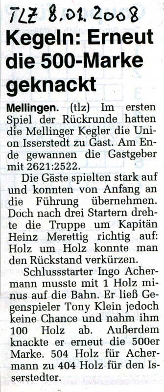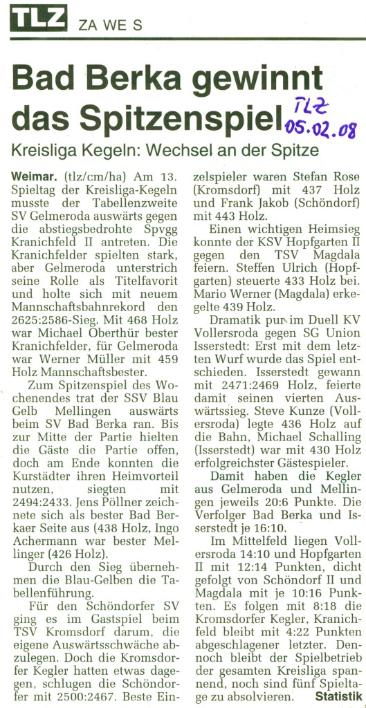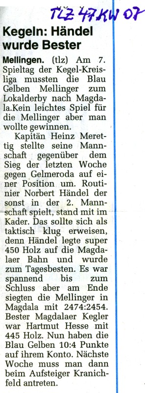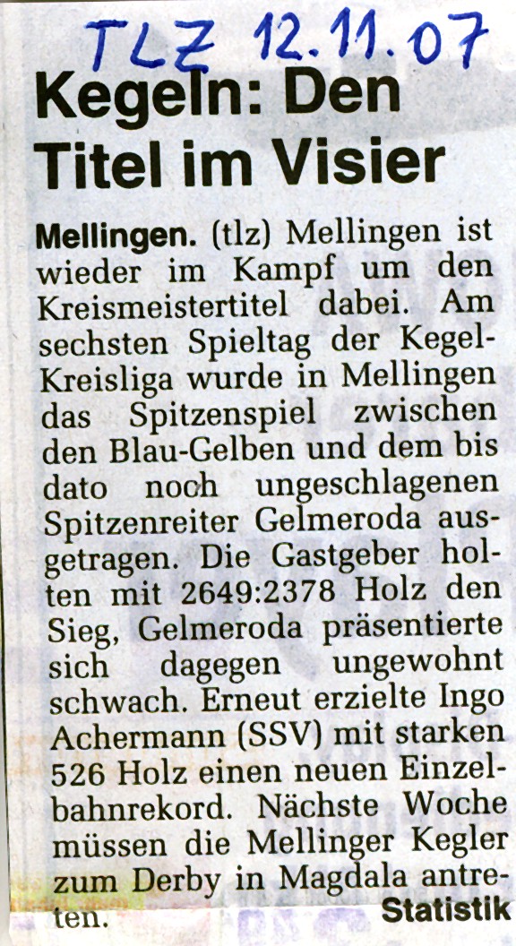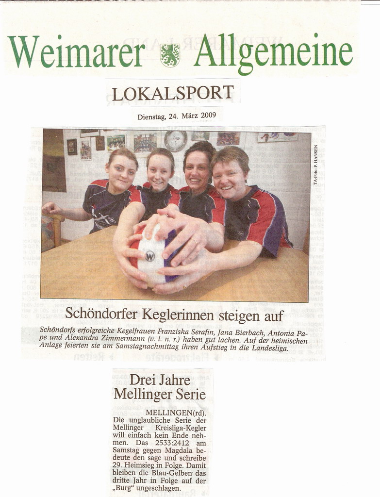 SSV-Keglerinnensteigen auf/Mellinger 29. Heimspiel gewonnen