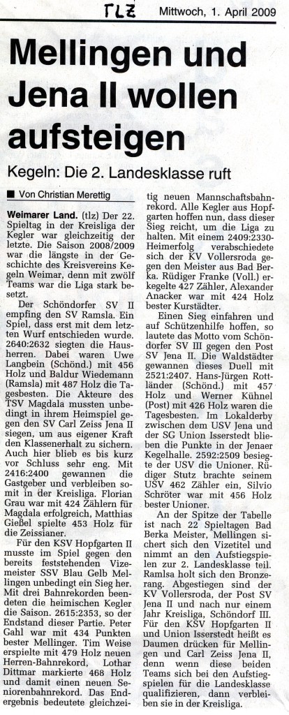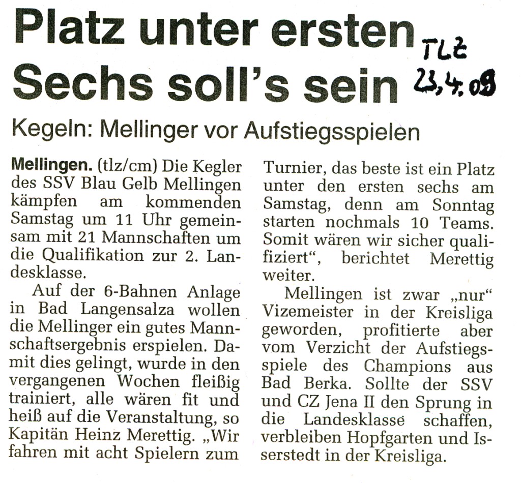 Spieltag KL - Mellingen +Jena 2. wollen aufsteigen