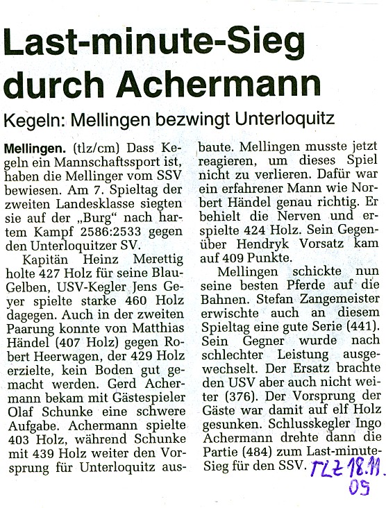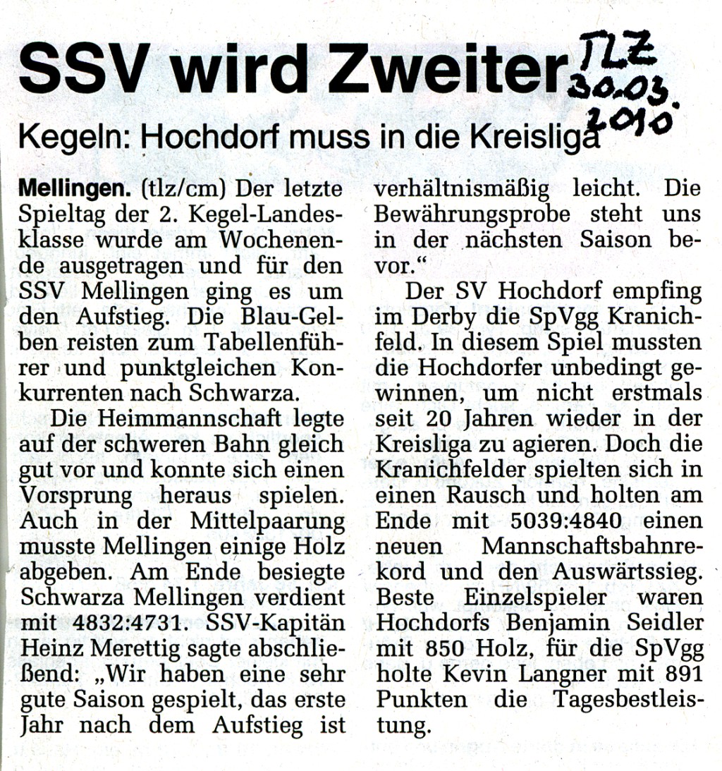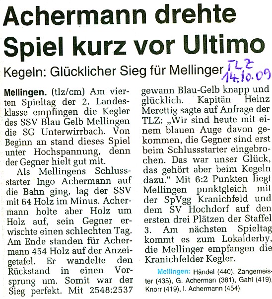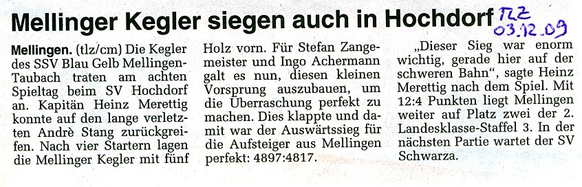 "8. Spieltag KL - Mellinger siegen auch in Hochdorf"