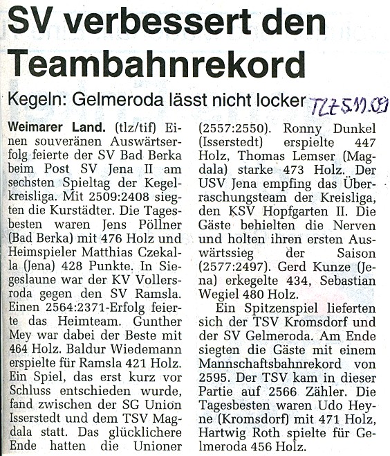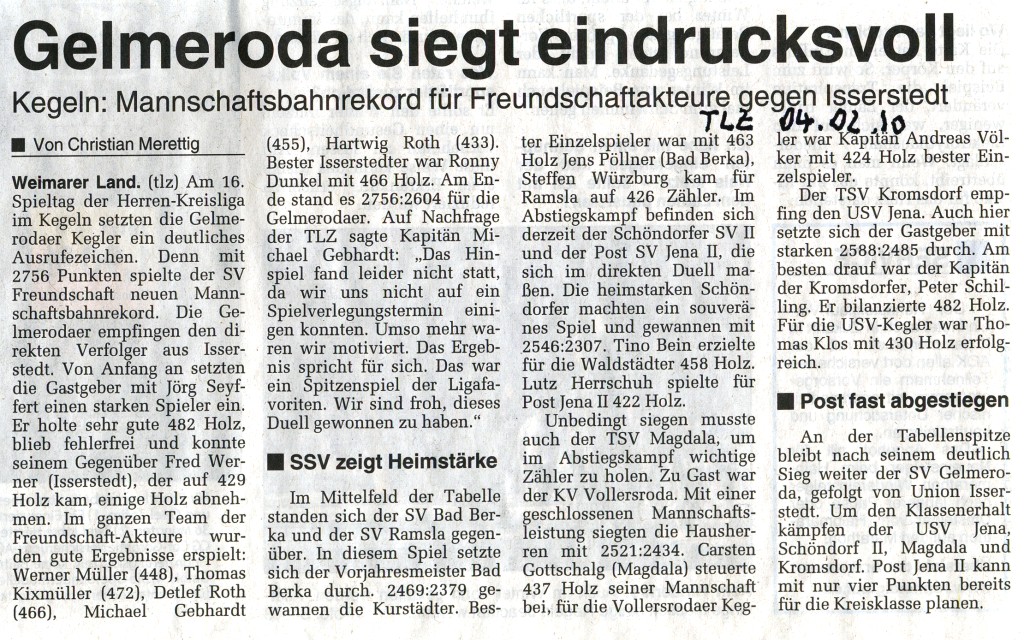 "SV Gelmeroda verbesserte den Teambahnrekord"