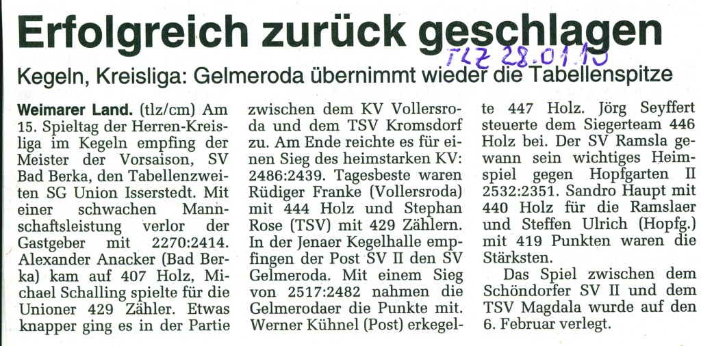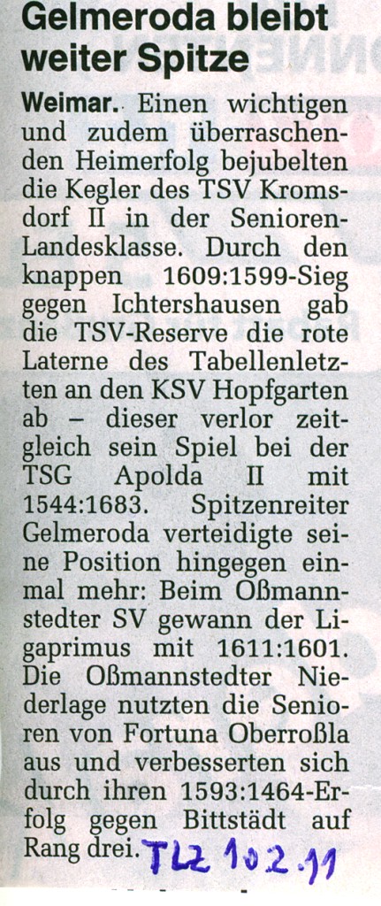 Kreisliga "SV Gelmeroda zieht weiter seine Kreise"