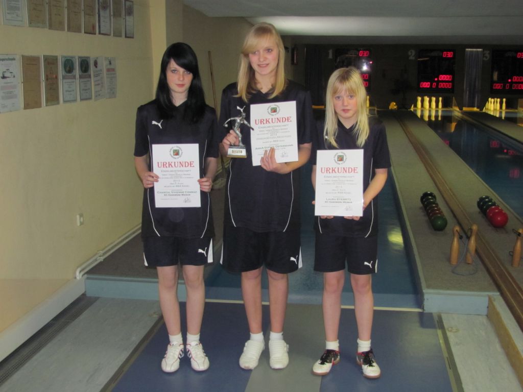 AK U14w v.l.n.r.: Chantal-Vivienne Conrad / Handwerk 3. Platz 664 Holz Anna-Sophie Ostermann/Handwerk 1. Platz 869 HolzLaura Stiebritz / Handwerk 2. Platz 839 Holz |