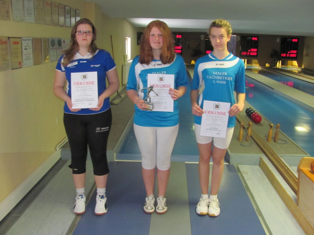AK U18w v.l.n.r.: Jasmin Schneidewind / SSV49 3. Platz 855 Holz Nicole Kothe /Hopfgarten 1. Platz 939 Holz Lisa Weise / Hopfgarten 2. Platz 801 Holz |