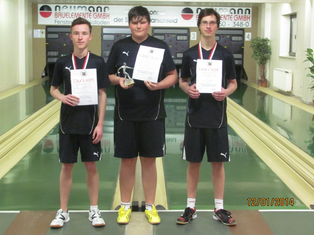 AK U14m v.r.n.l.: Max Heinemann / Kranichfeld 3. Platz 870 Holz Marcel Wicher / Bad Berka 1. Platz 920 Holz Eric Bechmann-Beier / Hopfgarten 2. Platz 898 Holz |