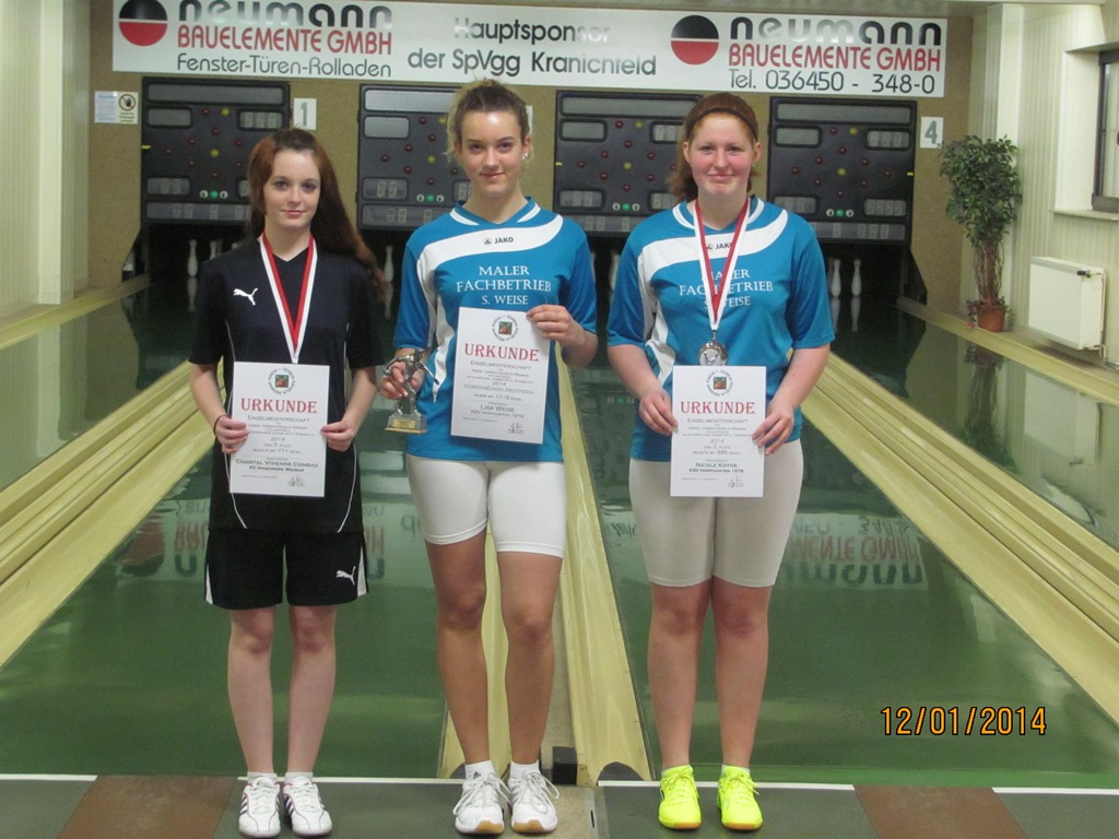 AK U14w v.l.n.r.: Vanessa Lorenz /Hopfgarten 3. Platz 746 Holz Anna-Sophie Ostermann/Handwerk 1. Platz 924 HolzSelina Fuhrmann / SSV 49 Weimar 2. Platz 778 Holz |
