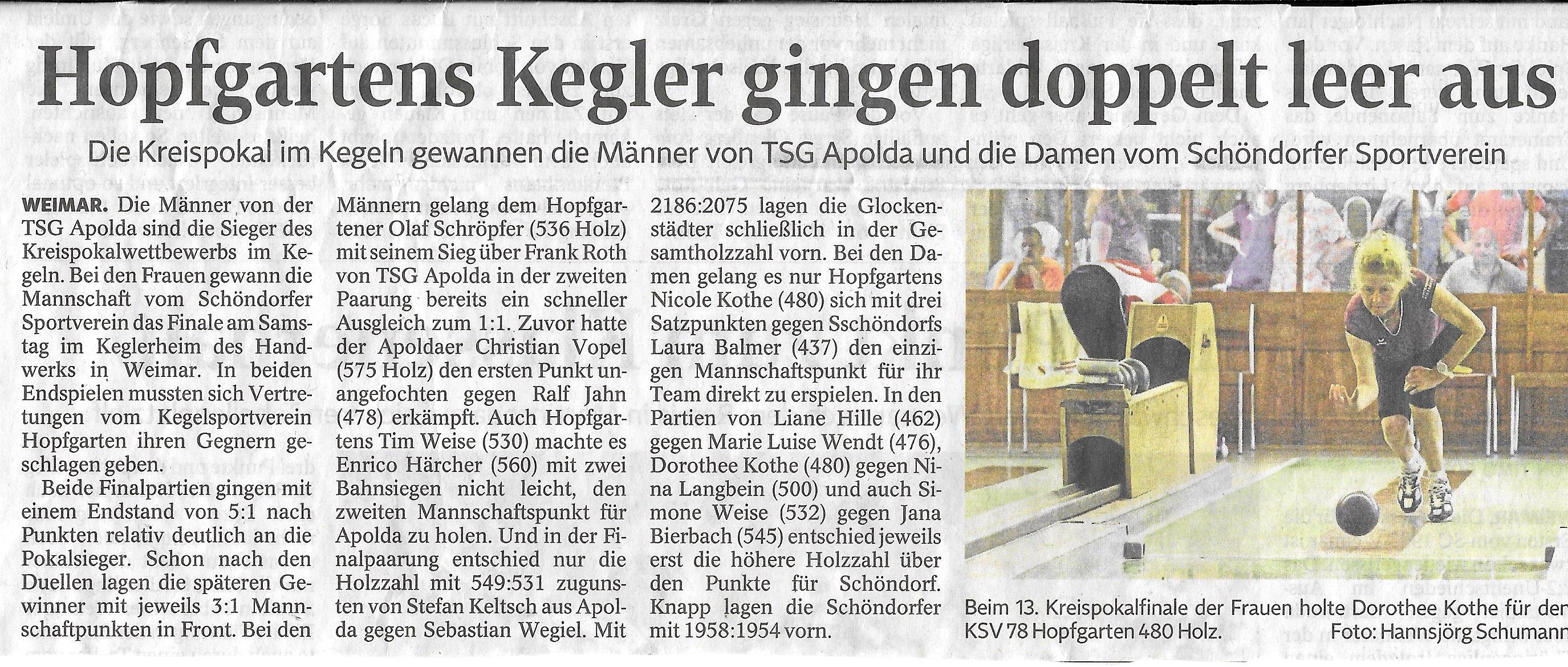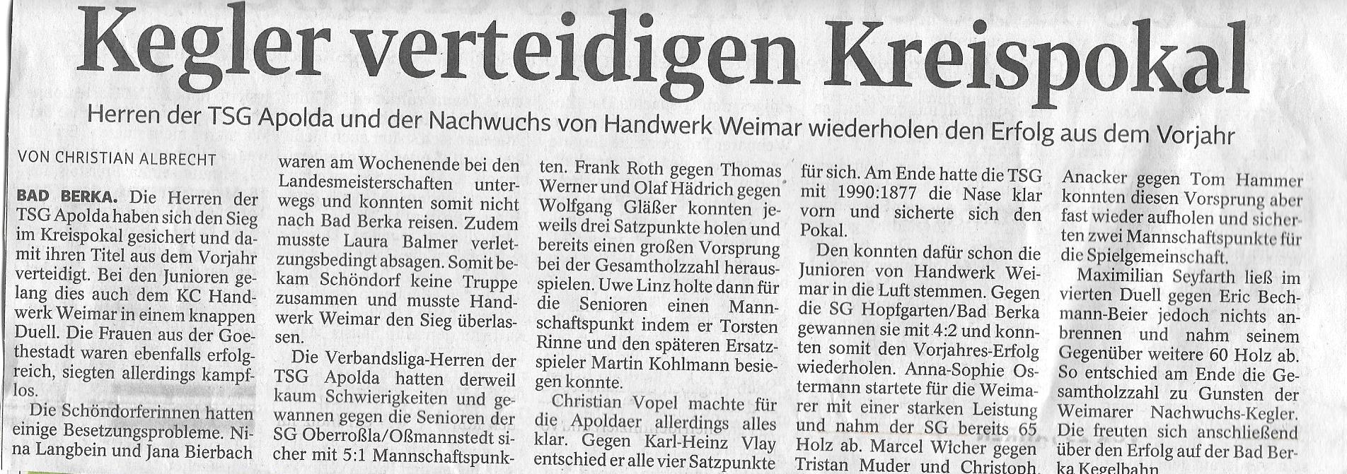 Vereinspokal (Bericht) Finale Jugend/Männer - "Kegler verteidigen Kreispokal"