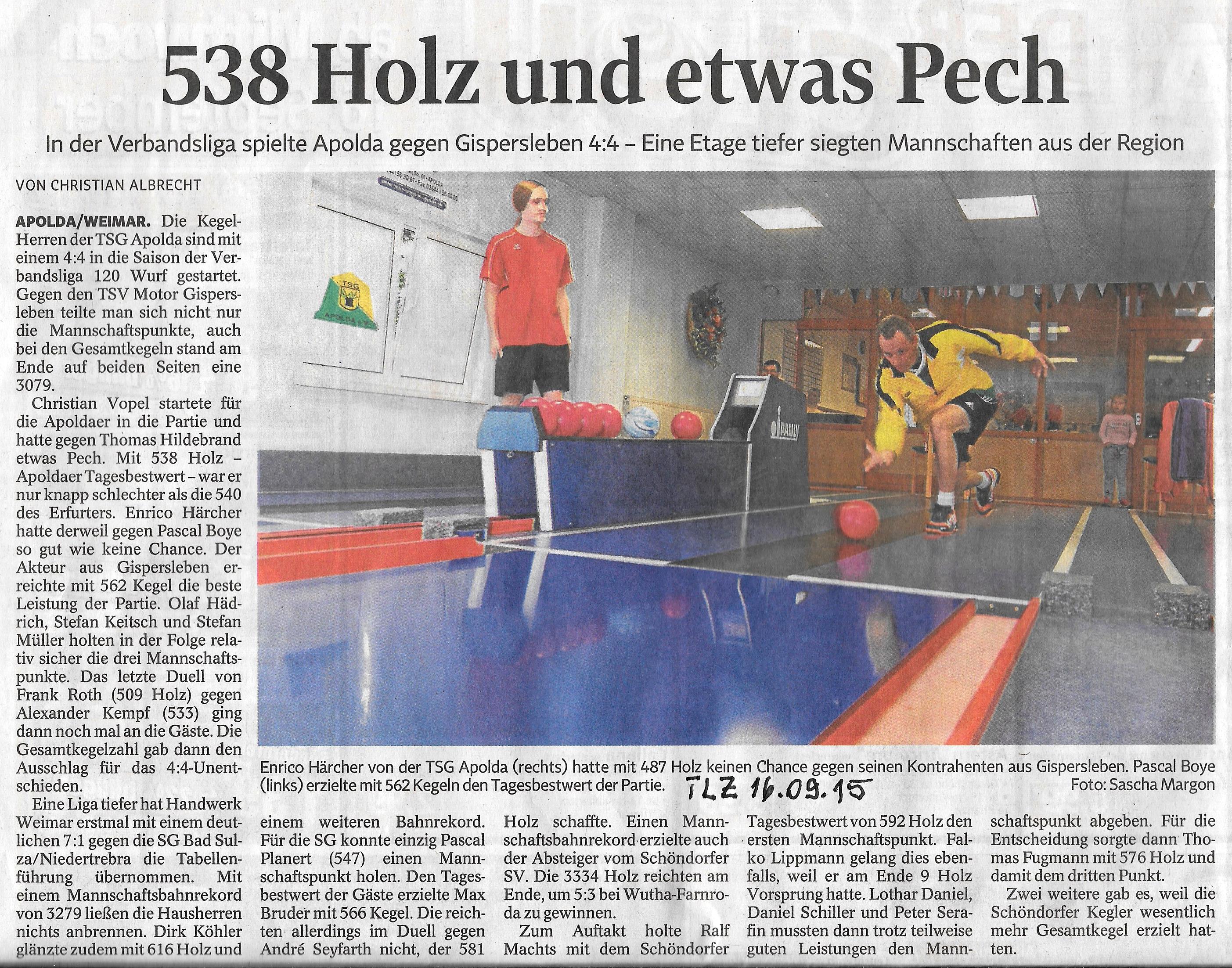 538 Holz und etwas Pech (1. Spieltag Verbandsliga)