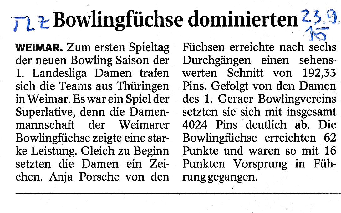 Bowlingfüchse dominieren (1. Spieltag Bowling 1.LL Damen)