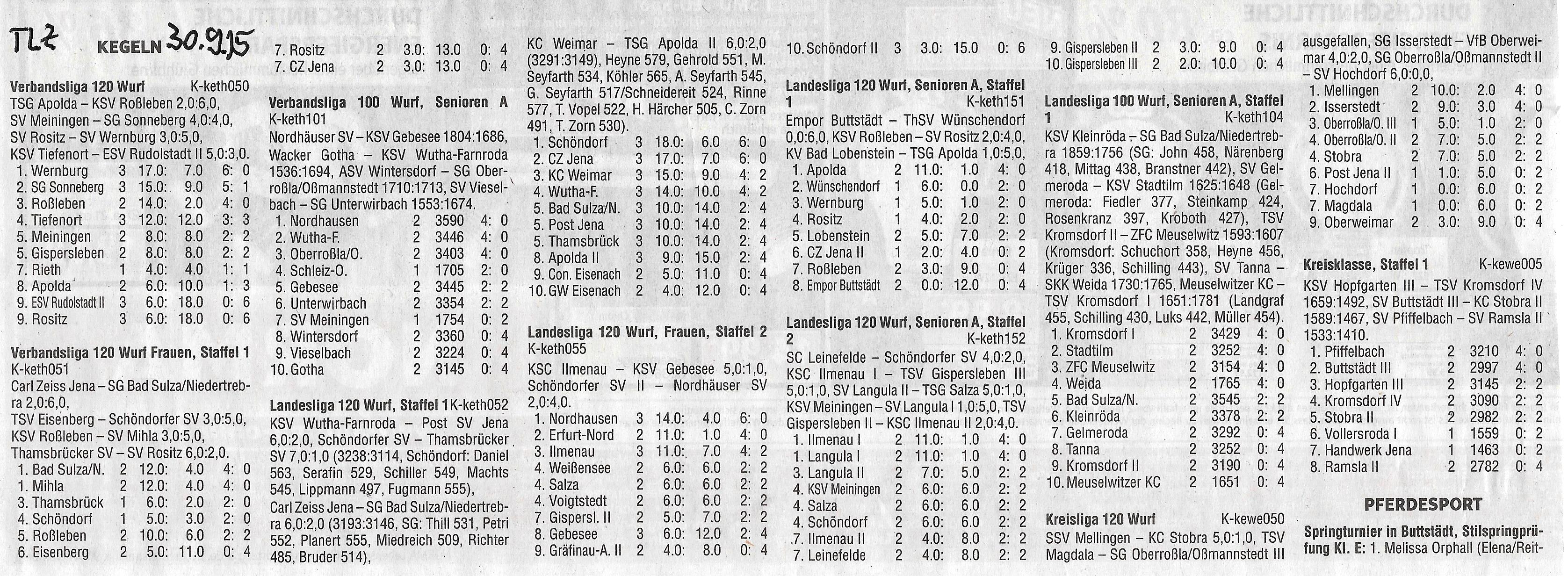 Tabellenstände 30.09.2015
