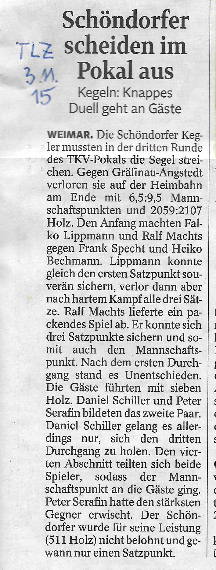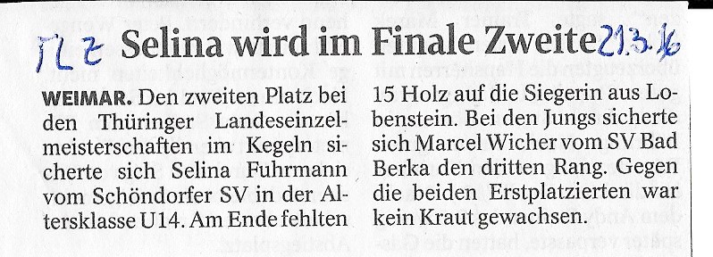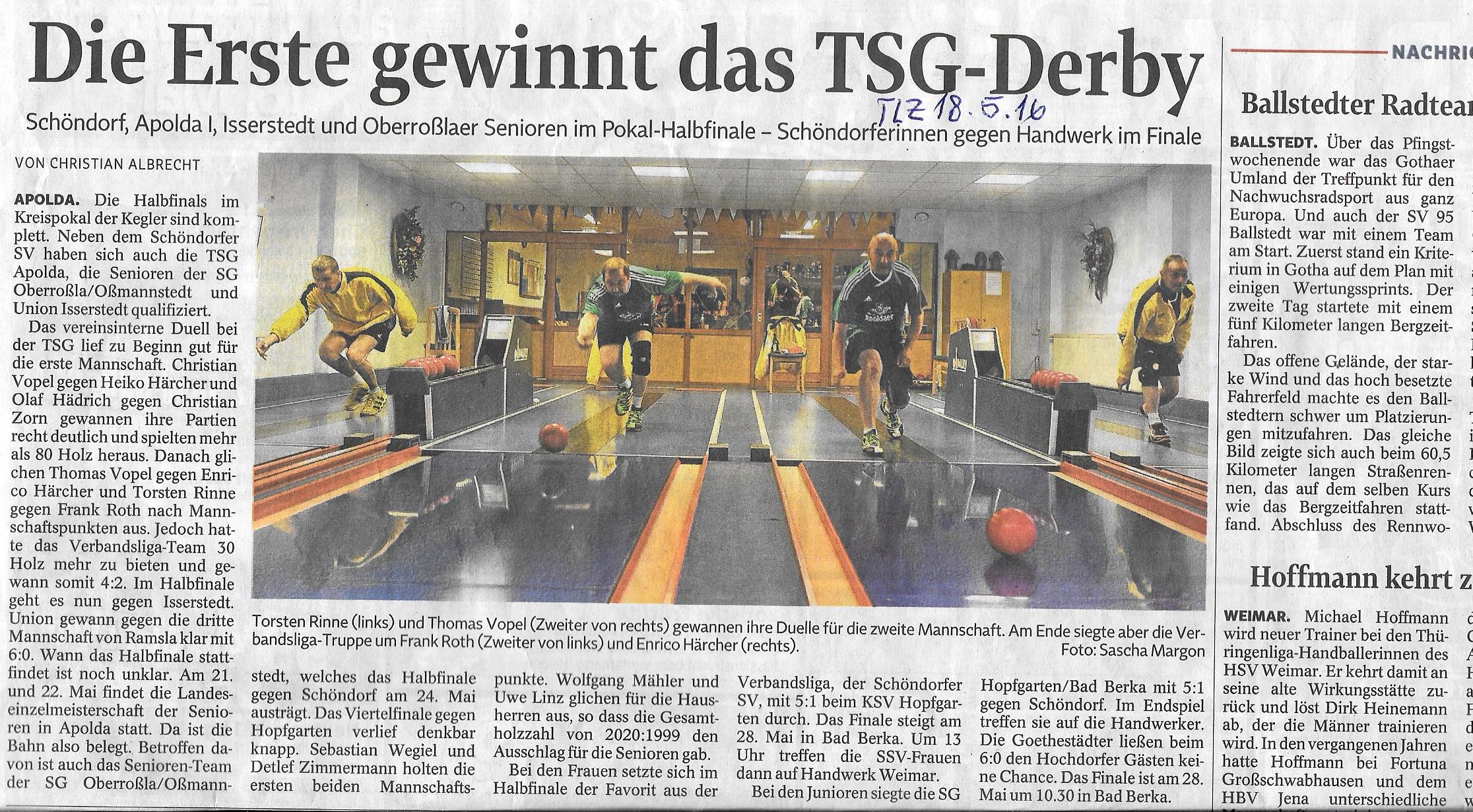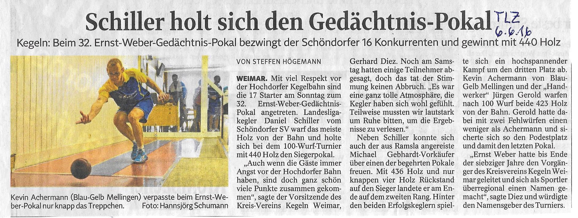 Bericht TLZ 32. Ernst-Weber-Pokal 2016 "Schiller holt sich den Gedächtnispokal"