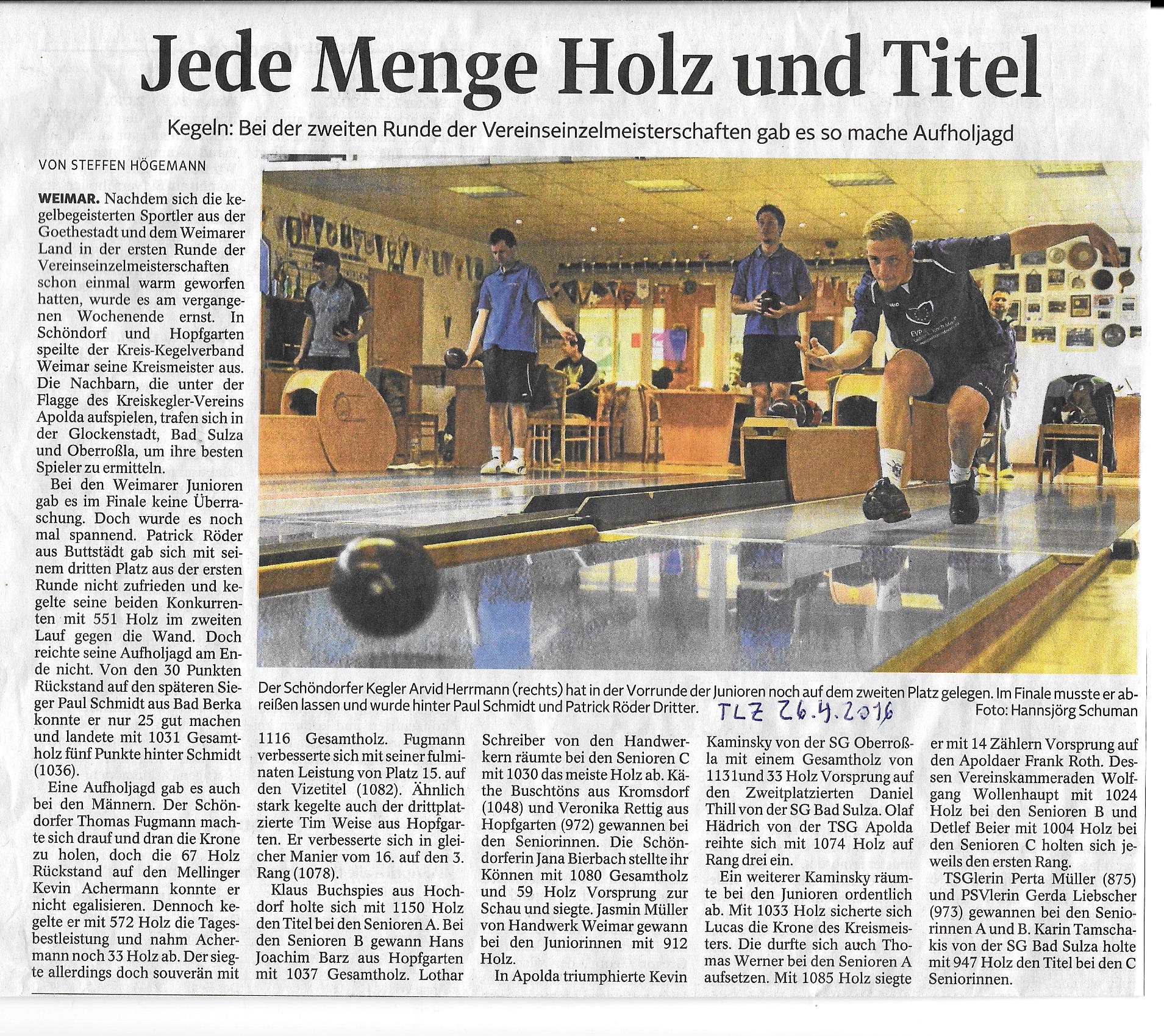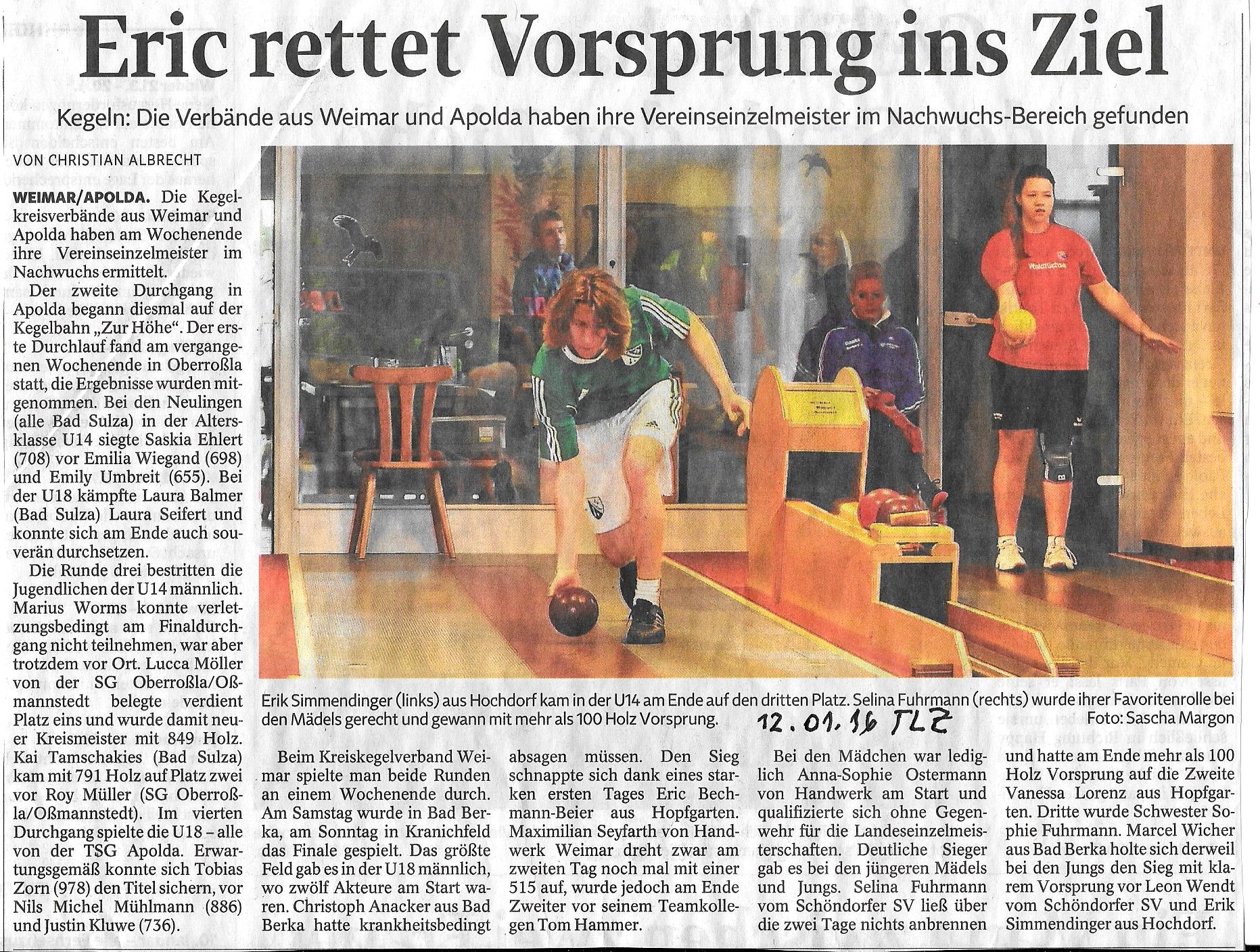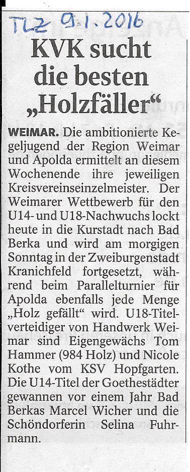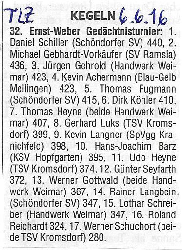 Bericht TLZ 32. Ernst-Weber-Pokal 2016 Ergebnisse
