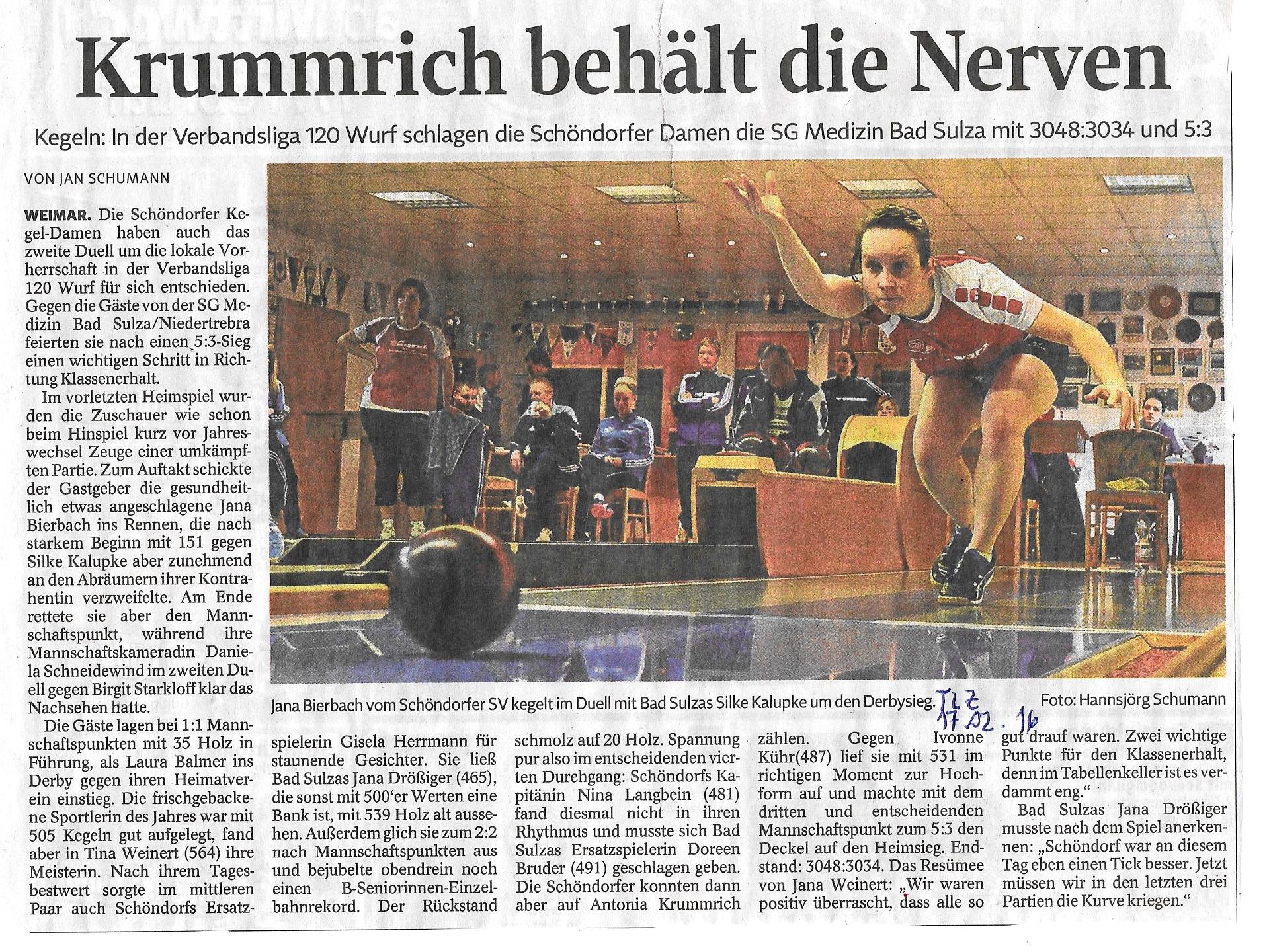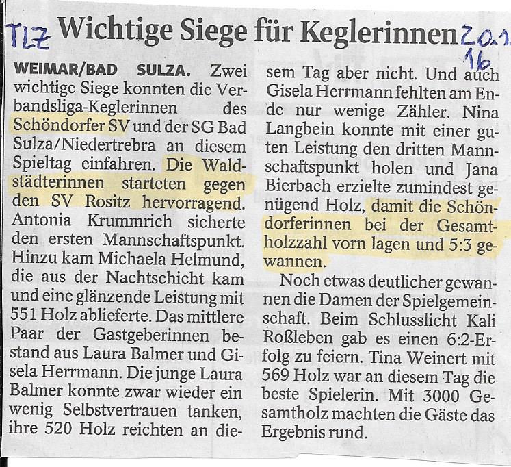 Wichtige Siege für Keglerinne Verbandsliga Schöndorfer SV 1949 Weimar