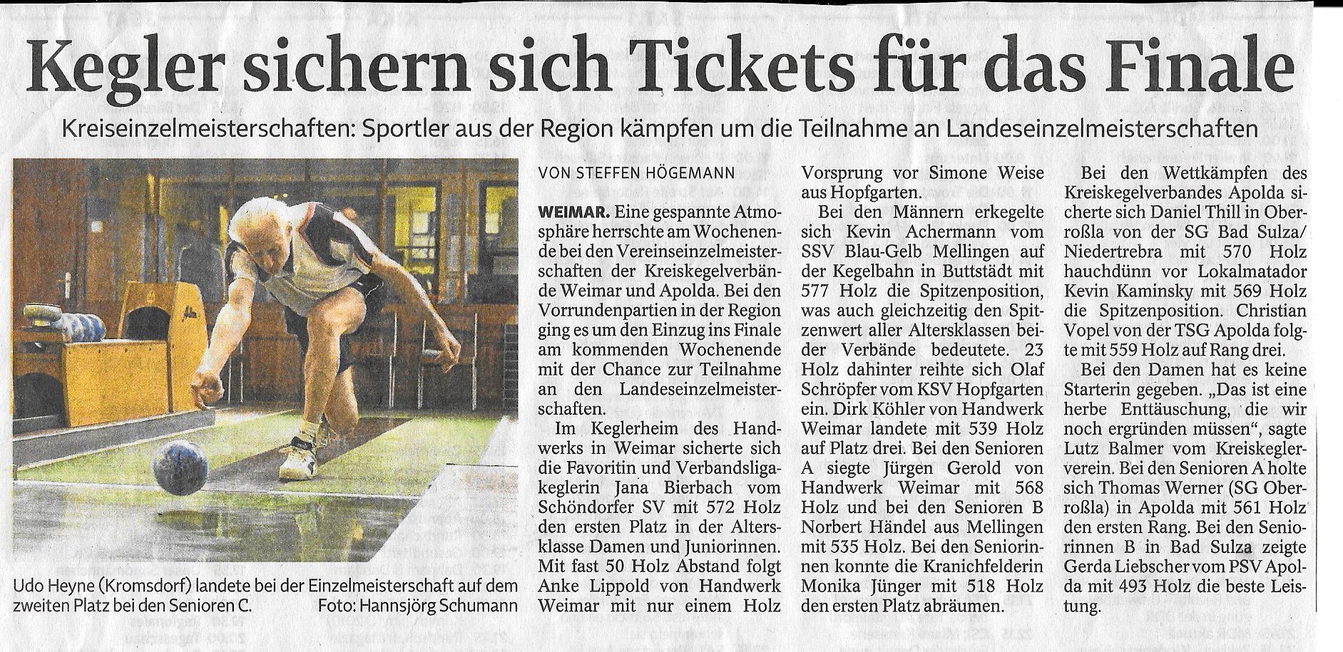 VEM 2016 Vorrunde "Kegler sichern sich Tickets für das Finale"