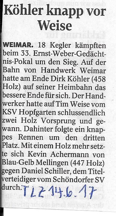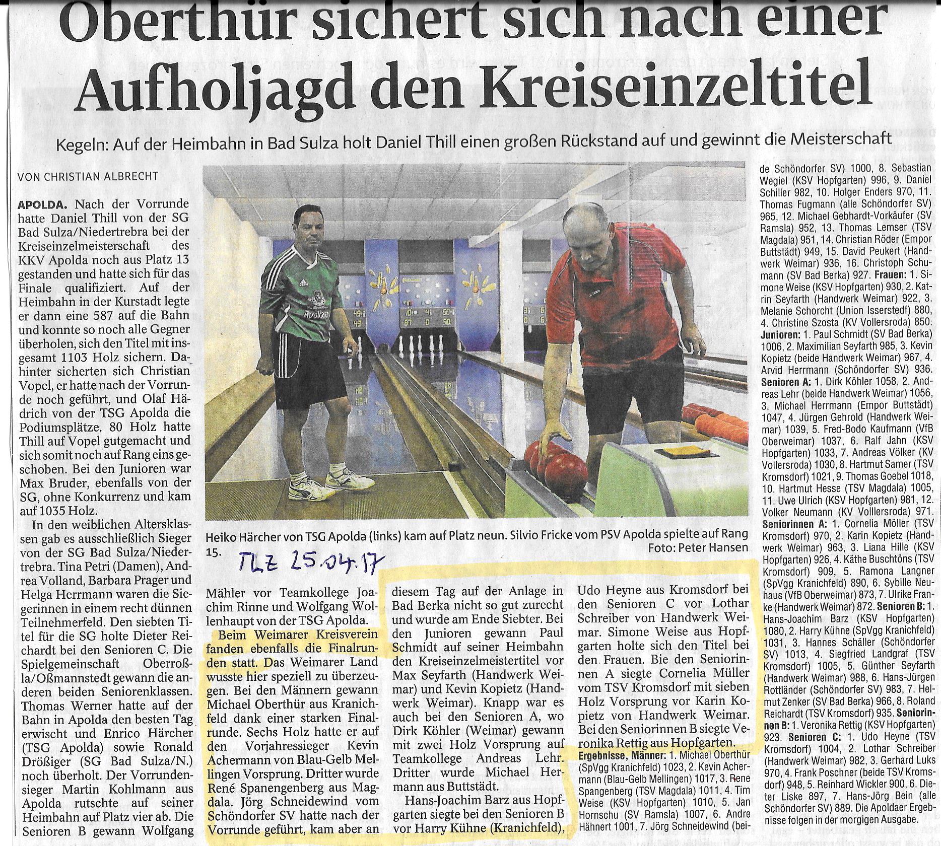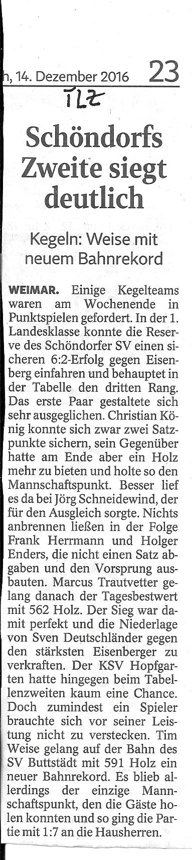 Bericht TLZ 2016-12-14 "Schöndorfs Zweite siegte deutlich