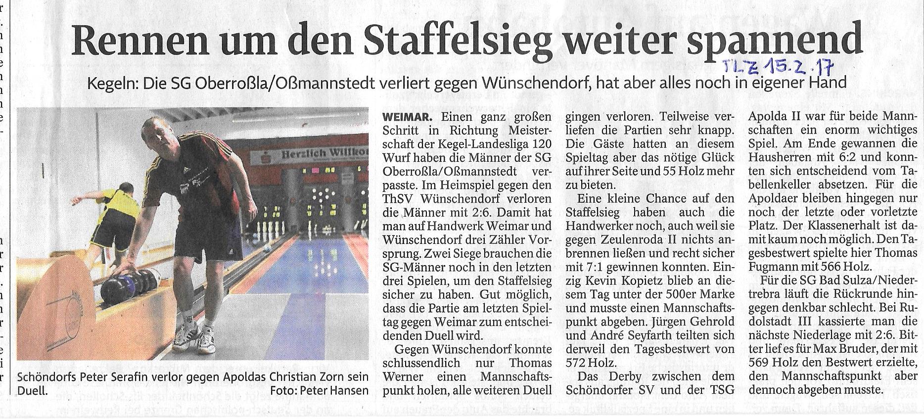 Bericht TLZ 15.02.17 Rennen um den Staffelsieg weiter spannend