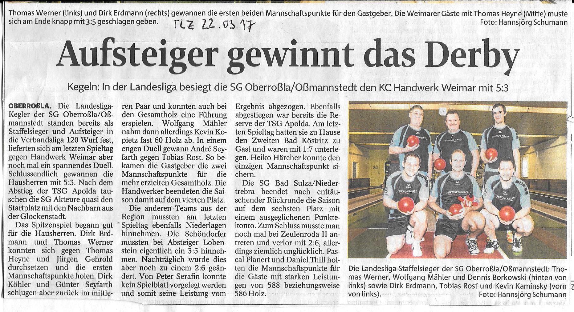 "Aufsteiger gewinnt Derby" Oberrossla - Handwerk Weimar - Bericht