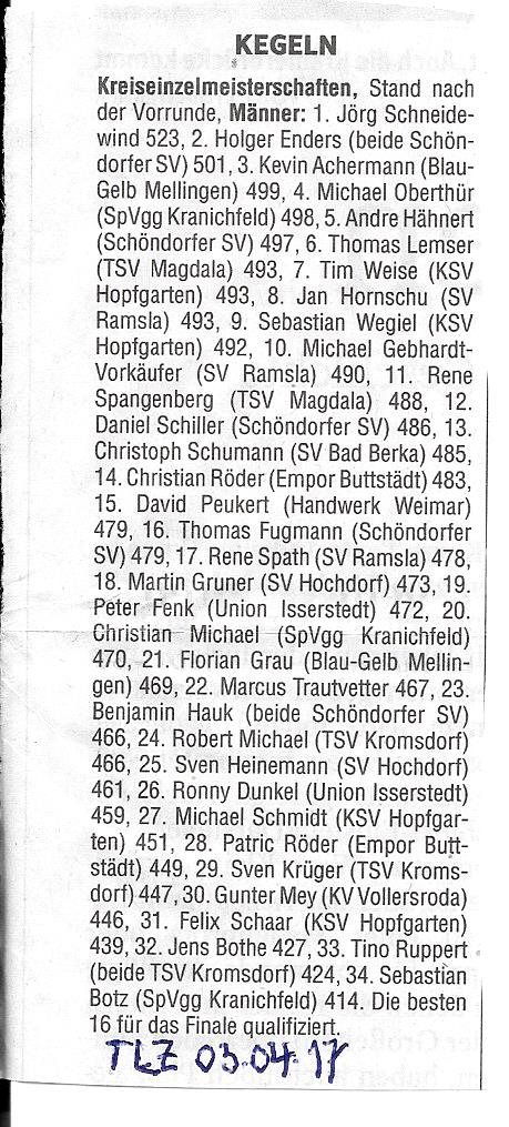 Willkommen beim Kreis-Verein-Kegeln Weimar
