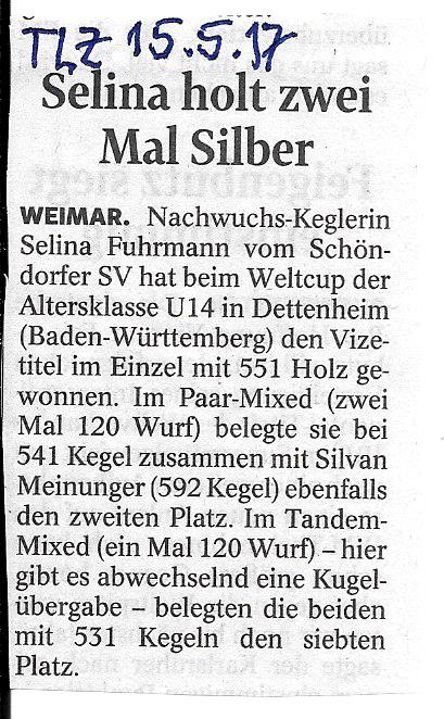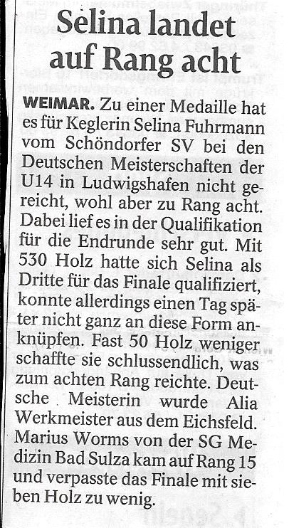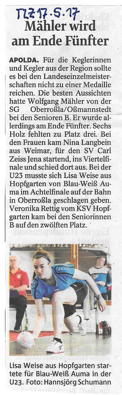 Bericht TLZ 2017-01-17 "Selina wurde Ihre Favoritenrolle gerecht"