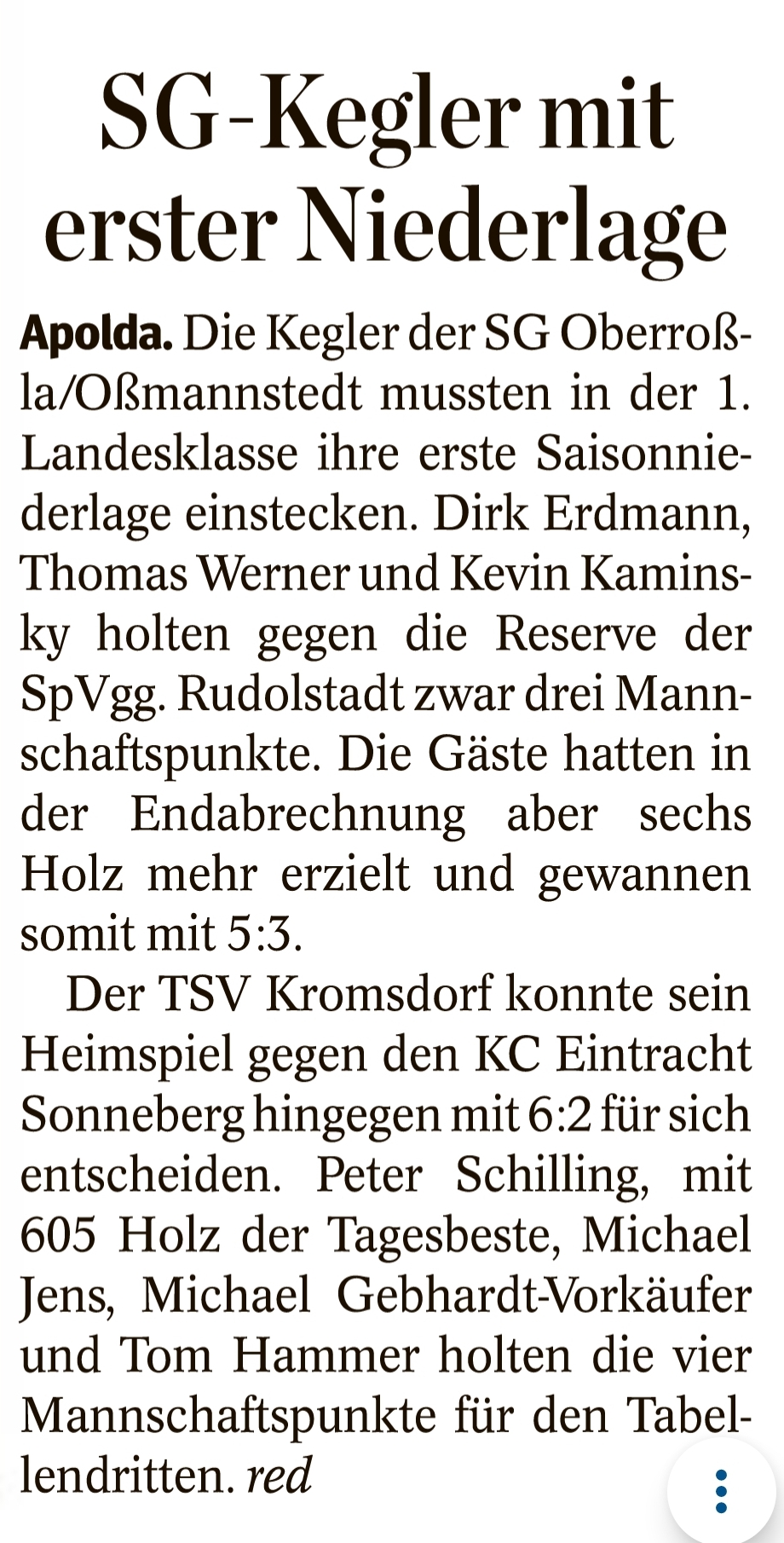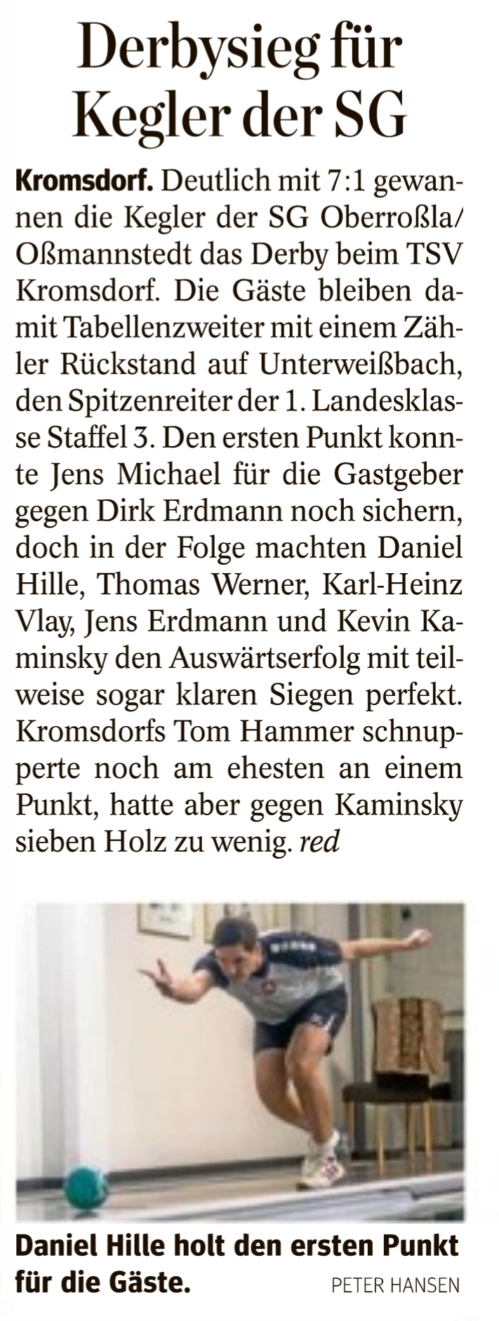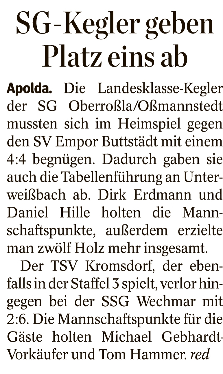 1. KK Oßmannstedt - Kromsdorf | vom 09.12.2022 | Quelle: TLZ vom 9.12.22 |