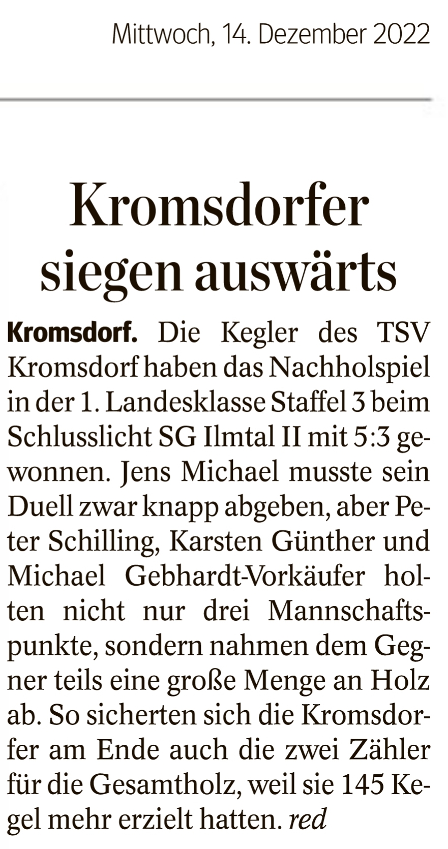 1. LK St.3 - Kromsdorfer siegen auswärts | vom 18.12.2022 | Quelle: TLZ vom 14.12.22 |
