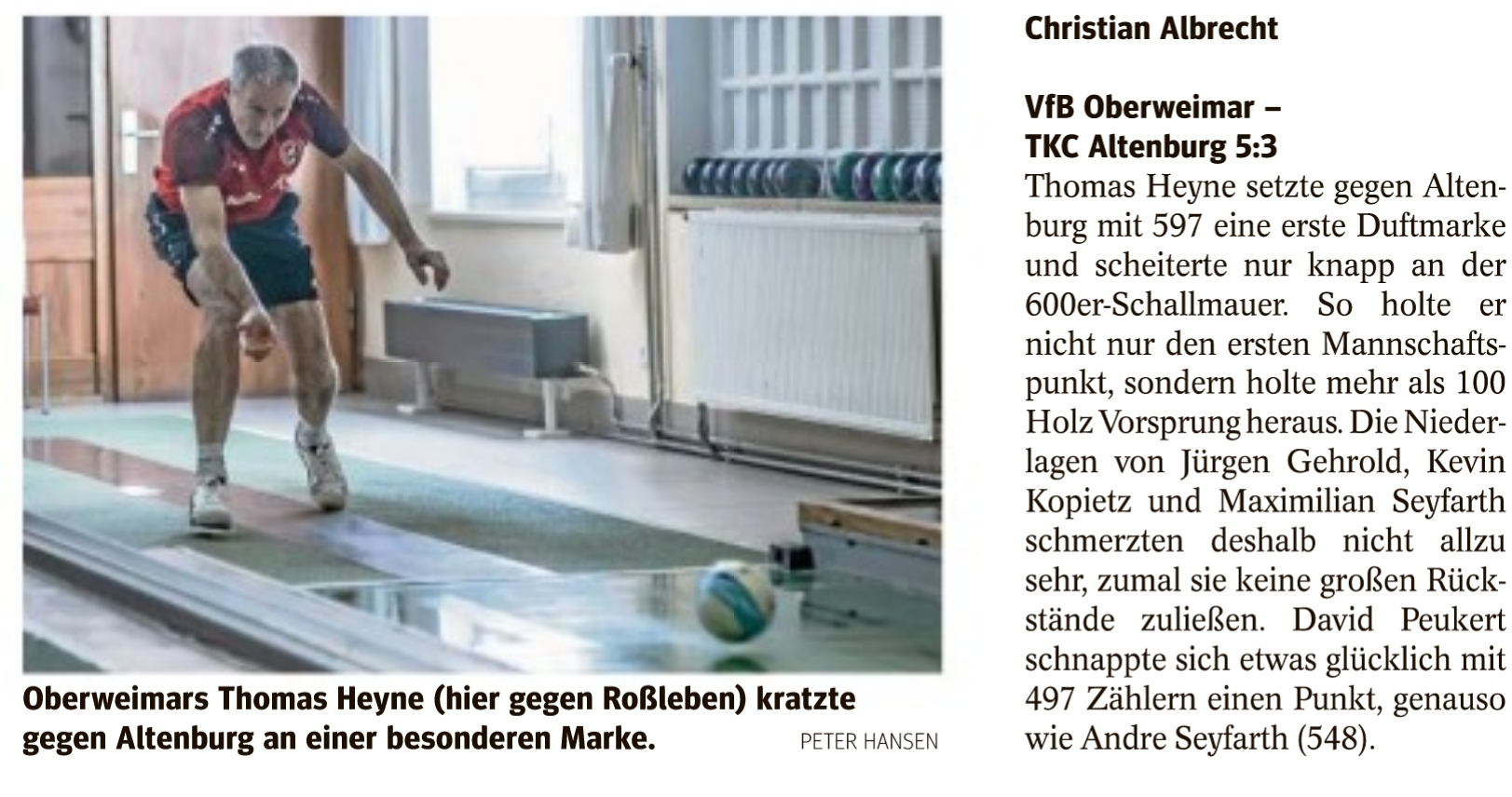 LL 120 - VfB Oberweimar-TKC Altenburg 5:3 | vom 16.01.2023 | Quelle: TLZ vom 16.01.23 |