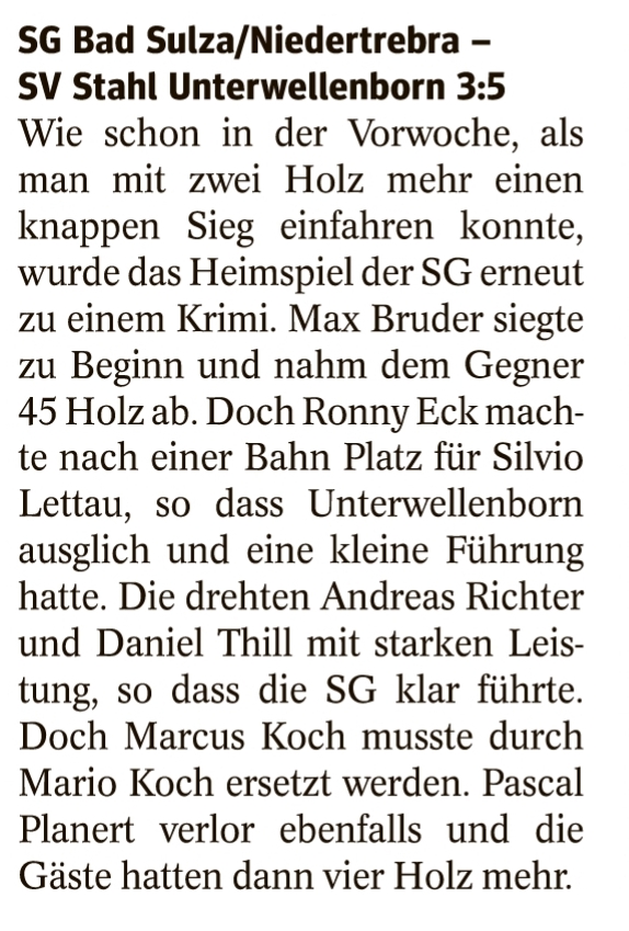 LL 120 - SG Bad Sulza/Niedertrebra - SV Stahl Unterwellenborn 3:5 | vom 16.01.2023 | Quelle: TLZ vom 16.01.23 |