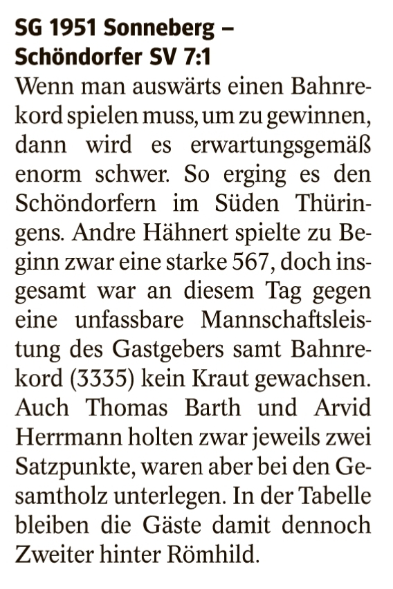 LL 120 - SG 1951 Sonneberg - Schöndorfer SV 7:1 | vom 16.01.2023 | Quelle: TLZ vom 16.01.23 |