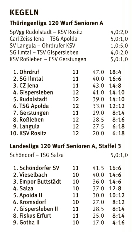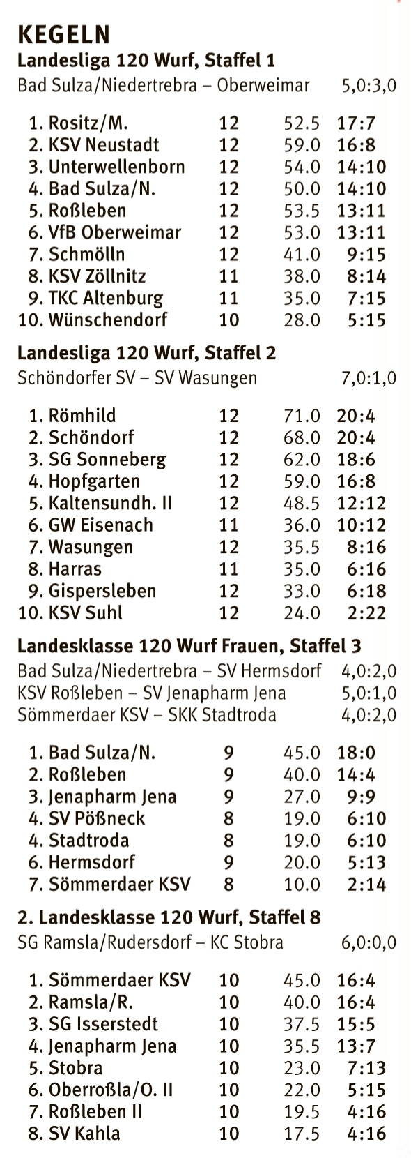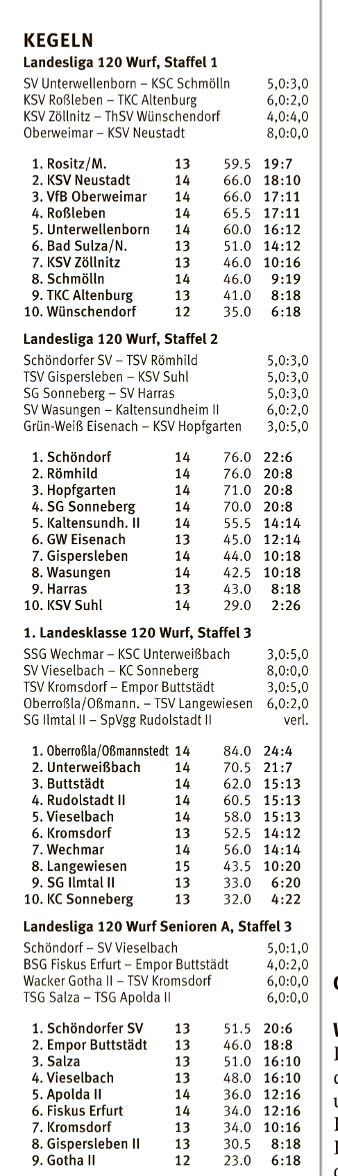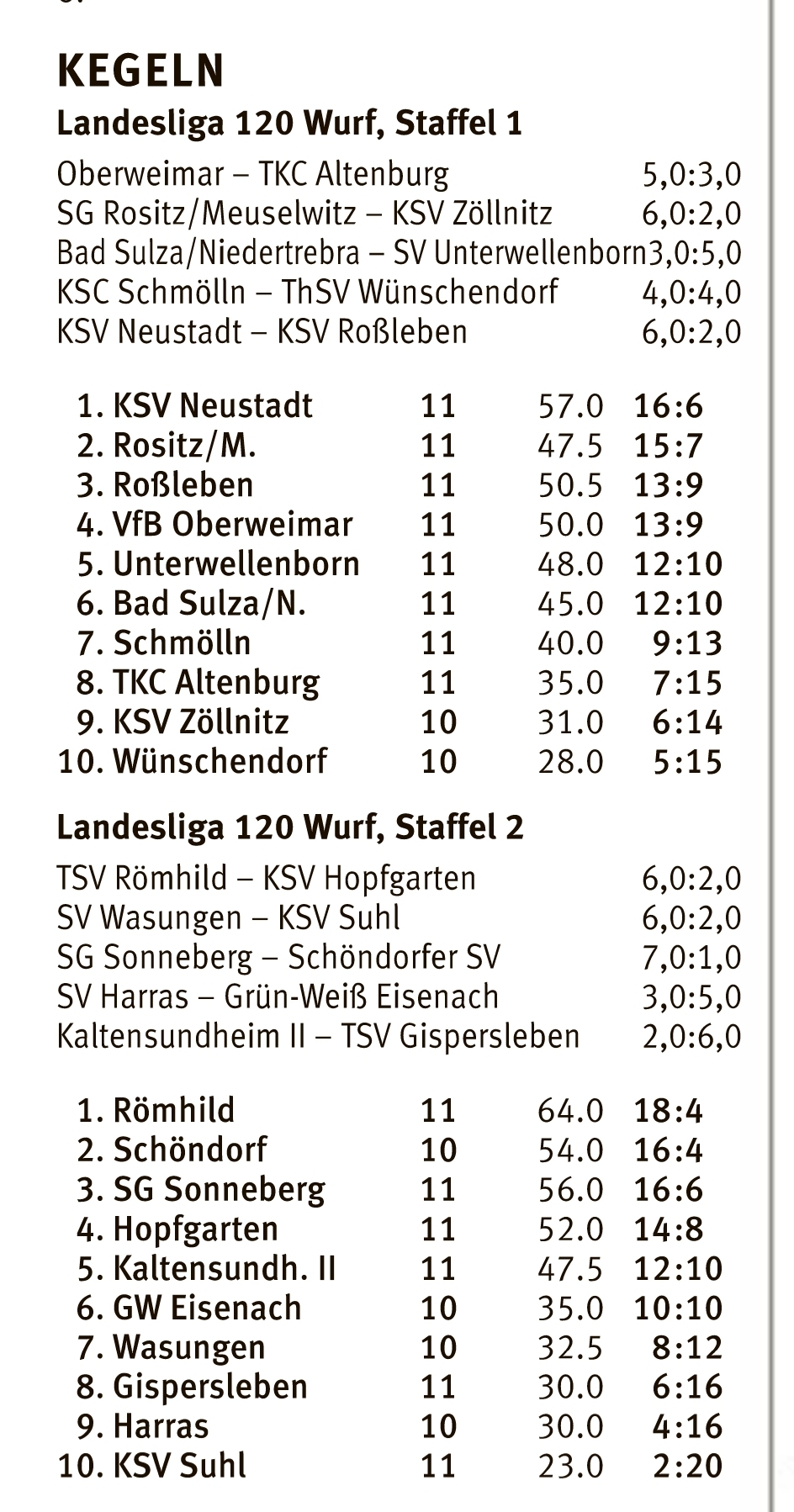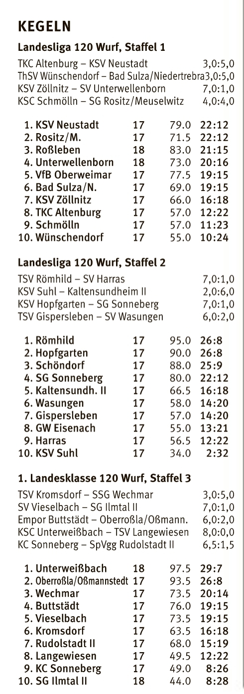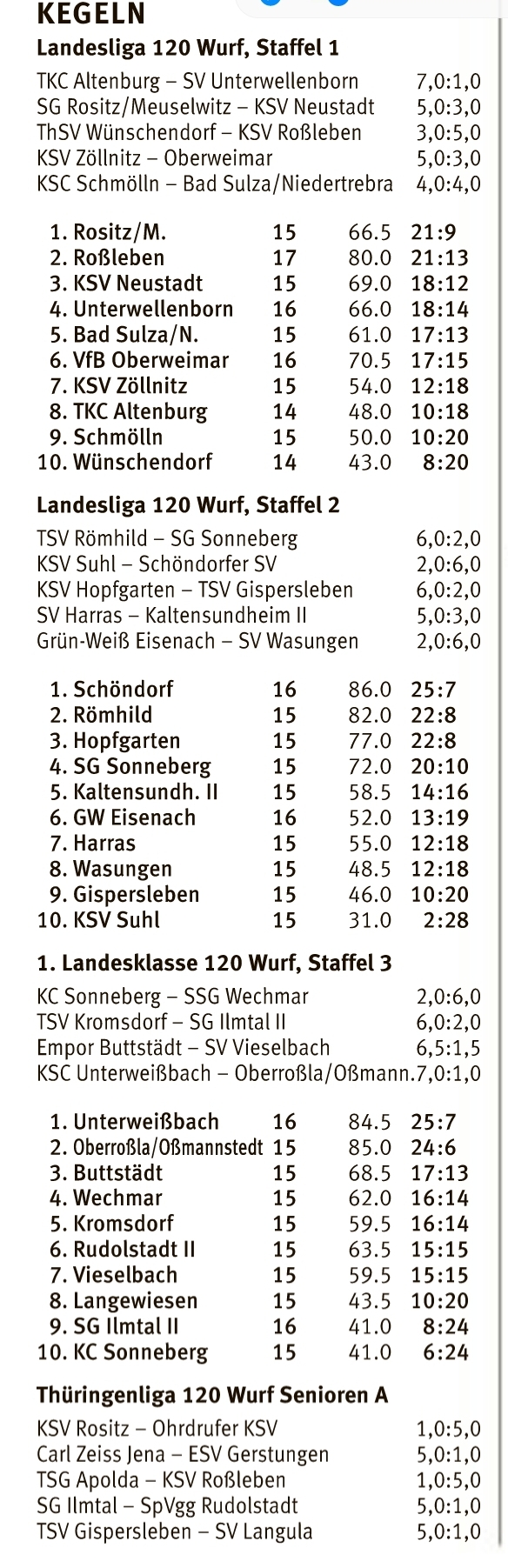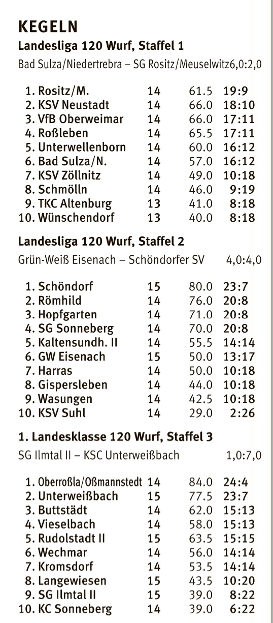 Landesliga 120 Staffel 1 und 2 vom 15.1.23 | vom 16.01.2023 | Quelle: TLZ vom 16.01.2023 |