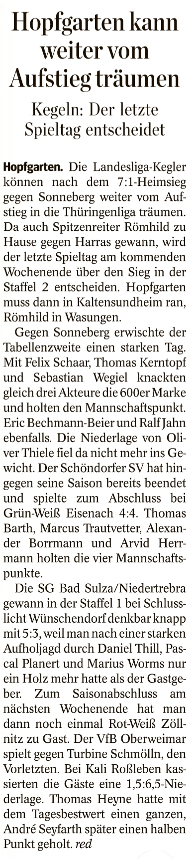 Landesliga Hopfgarten-Schöndorf | vom 07.11.2022 | Quelle: TLZ vom 7.11.22 |