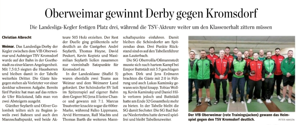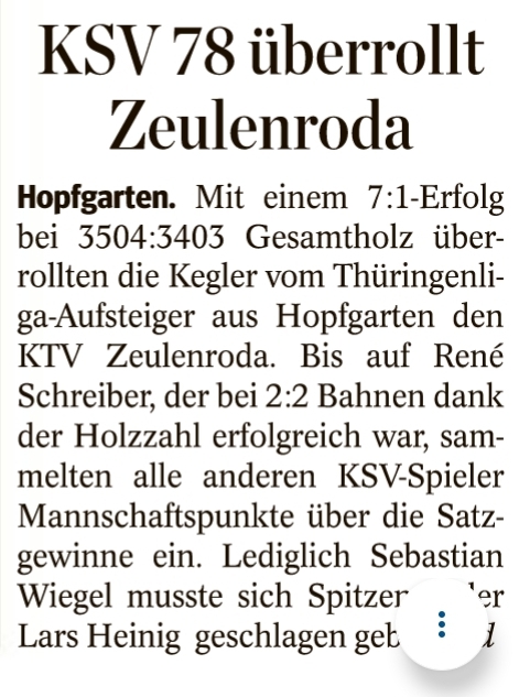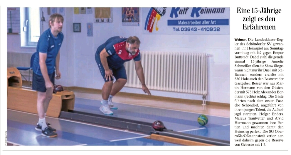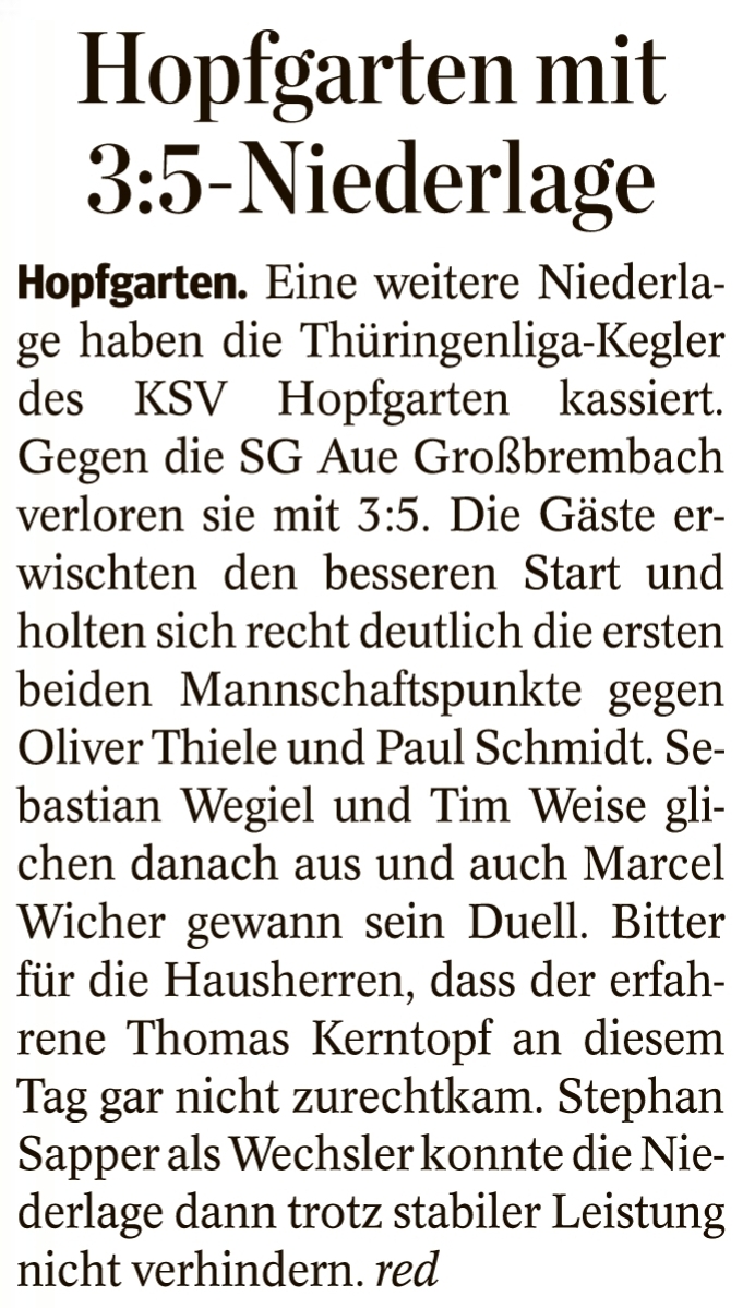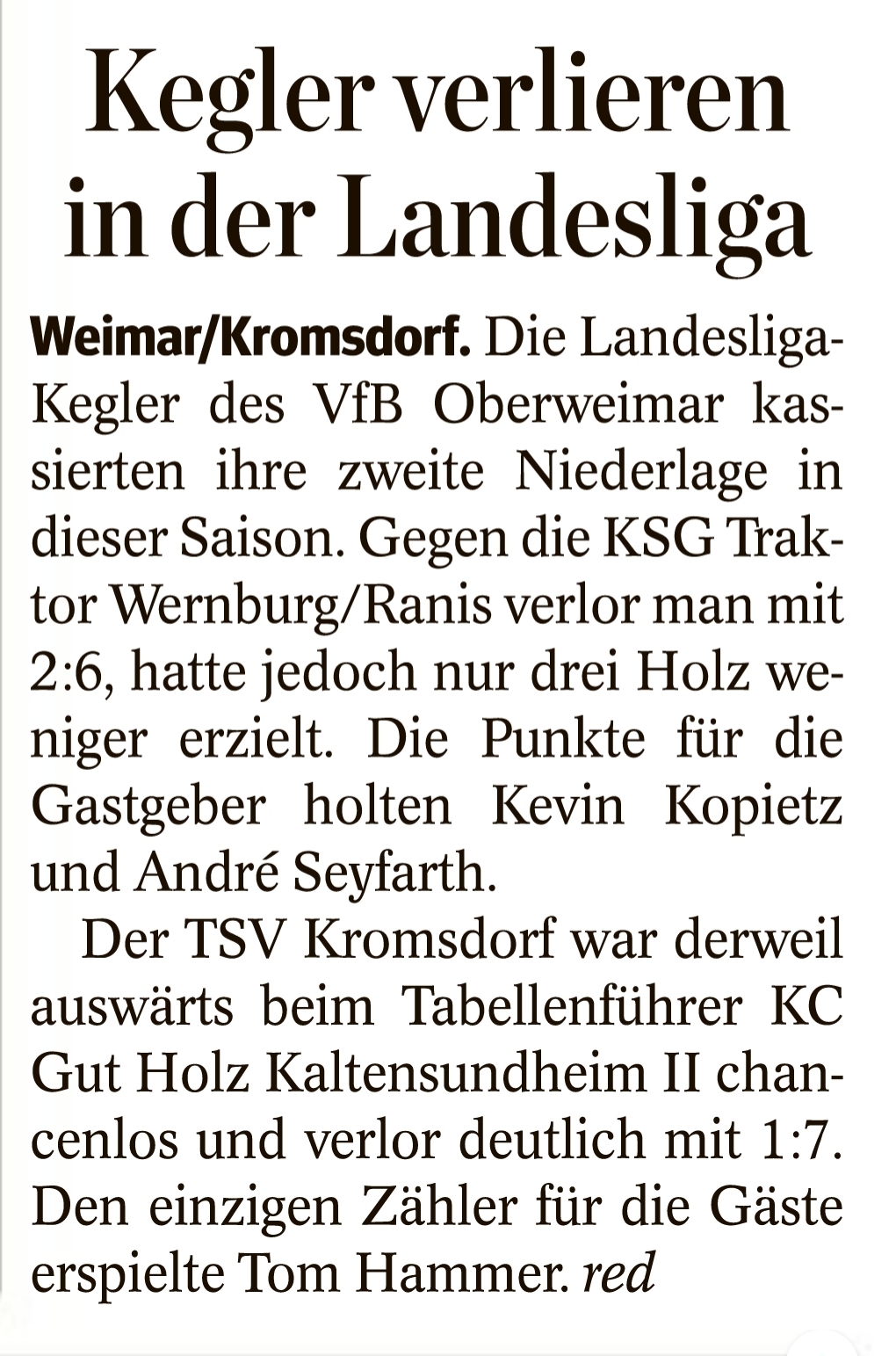Kegler verlieren in der Landesliga | vom 29.10.2024 | Quelle: TLZ_29.10.24 |