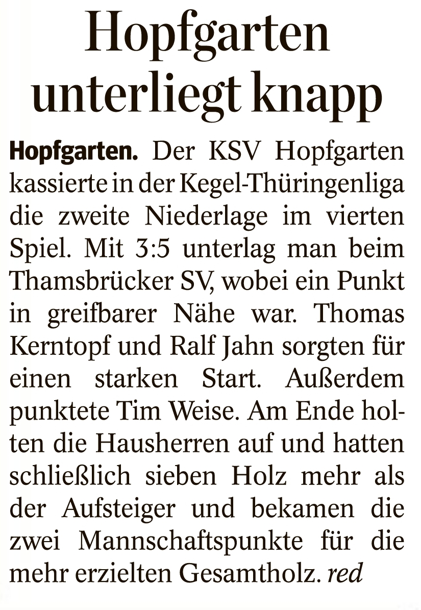 Hopfgarten mit Niederlage | vom 28.10.2024 | Quelle: TLZ_28.10.24 |